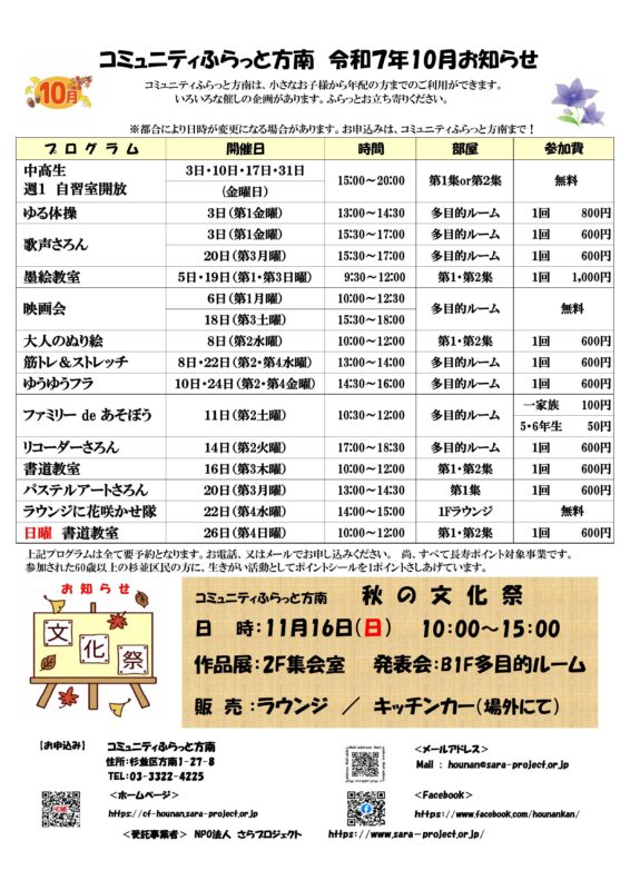 開催場所 | コミュニティふらっと方南 〒168-0062 杉並区方南1丁目27番8号 [MAP] |