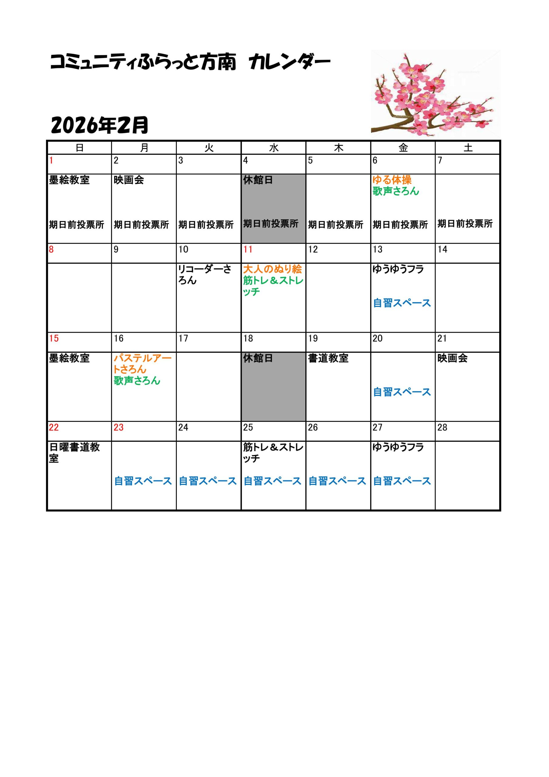 2月の行事カレンダー