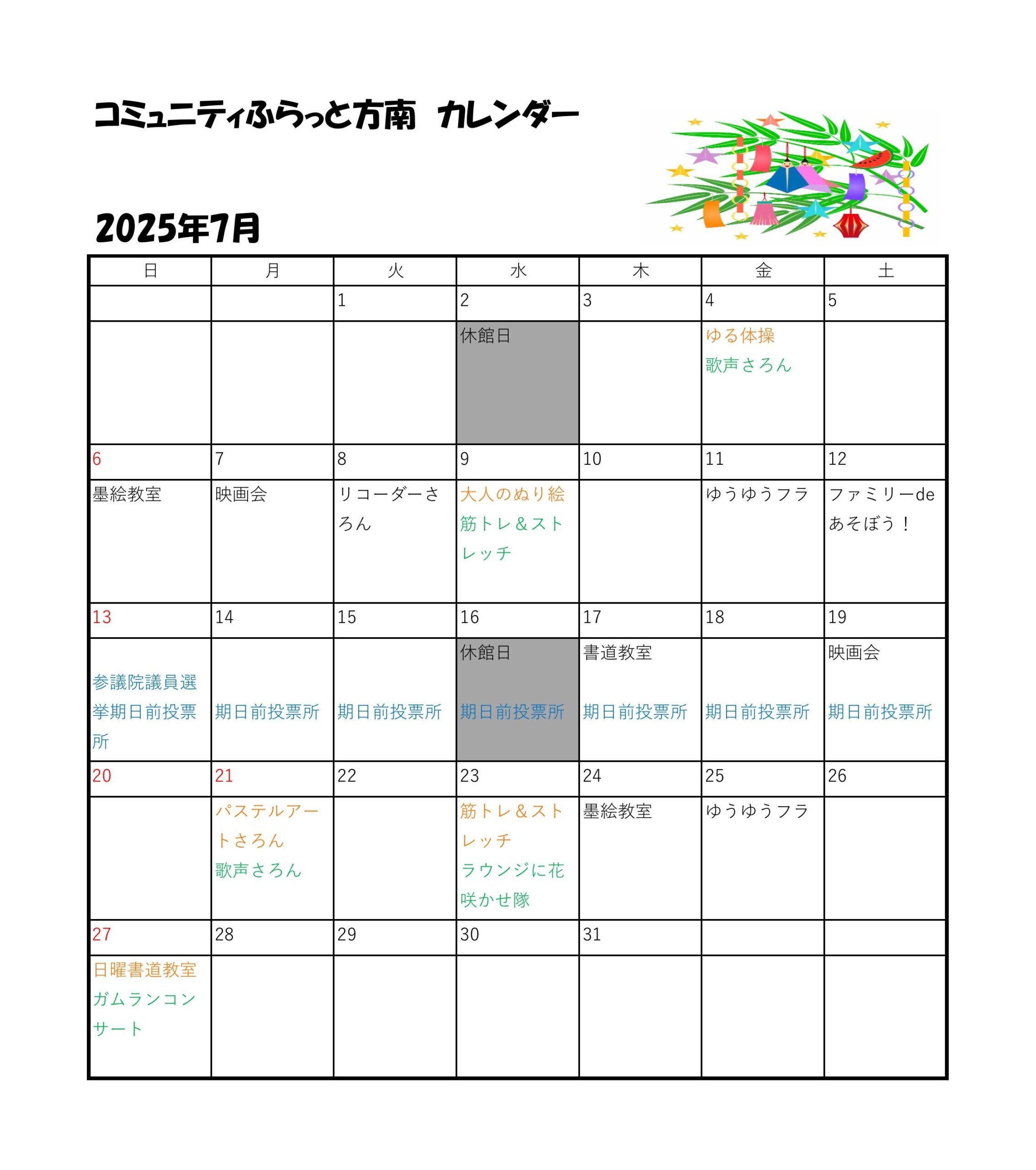 7月も、コミュニティふらっと方南では、さまざまなイベントをご用意しています。