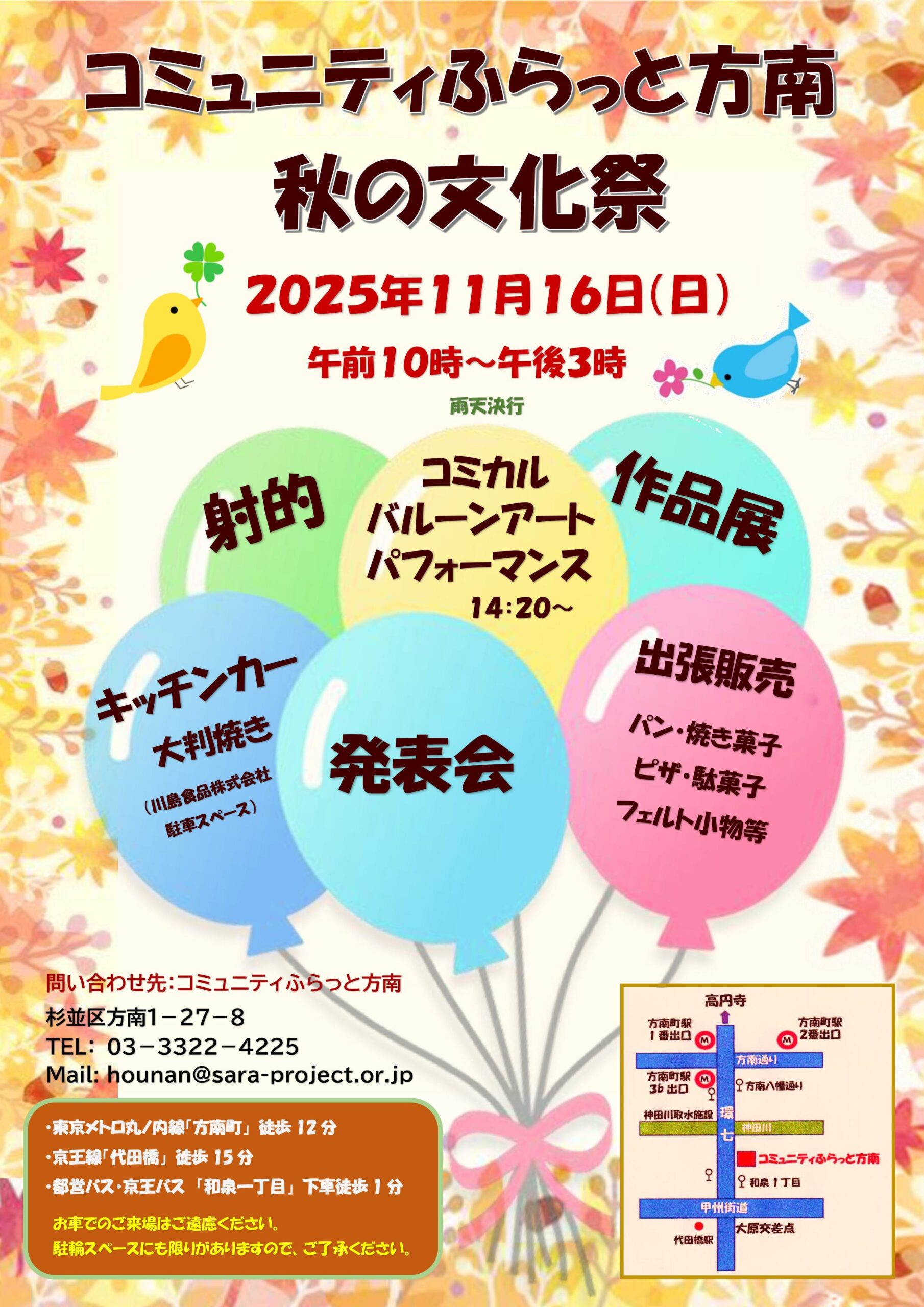 今年も、秋の文化祭を開催します。いろいろな作品展示、歌や踊りの発表、