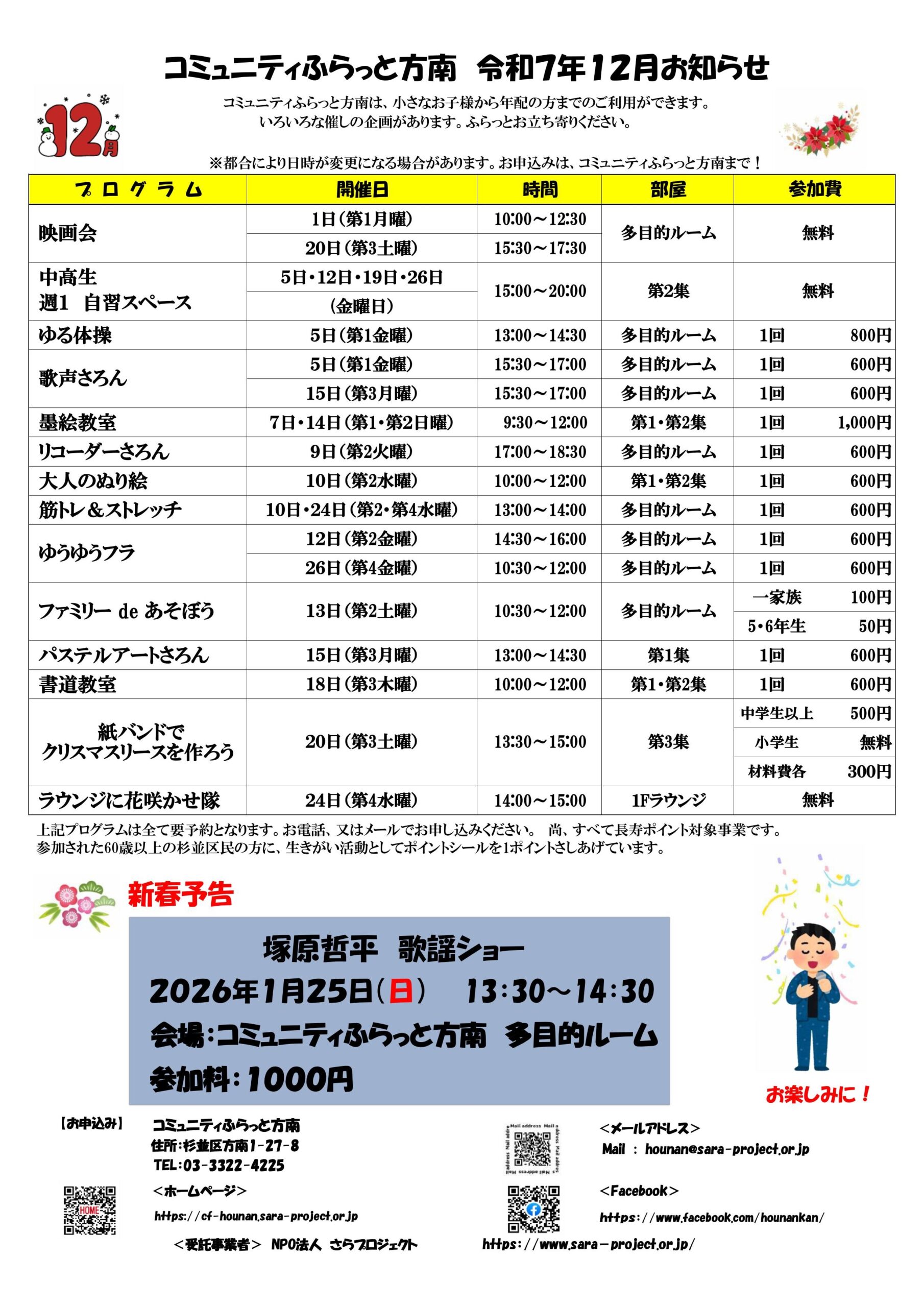こんにちは♪ 12月のプログラムをお知らせします。